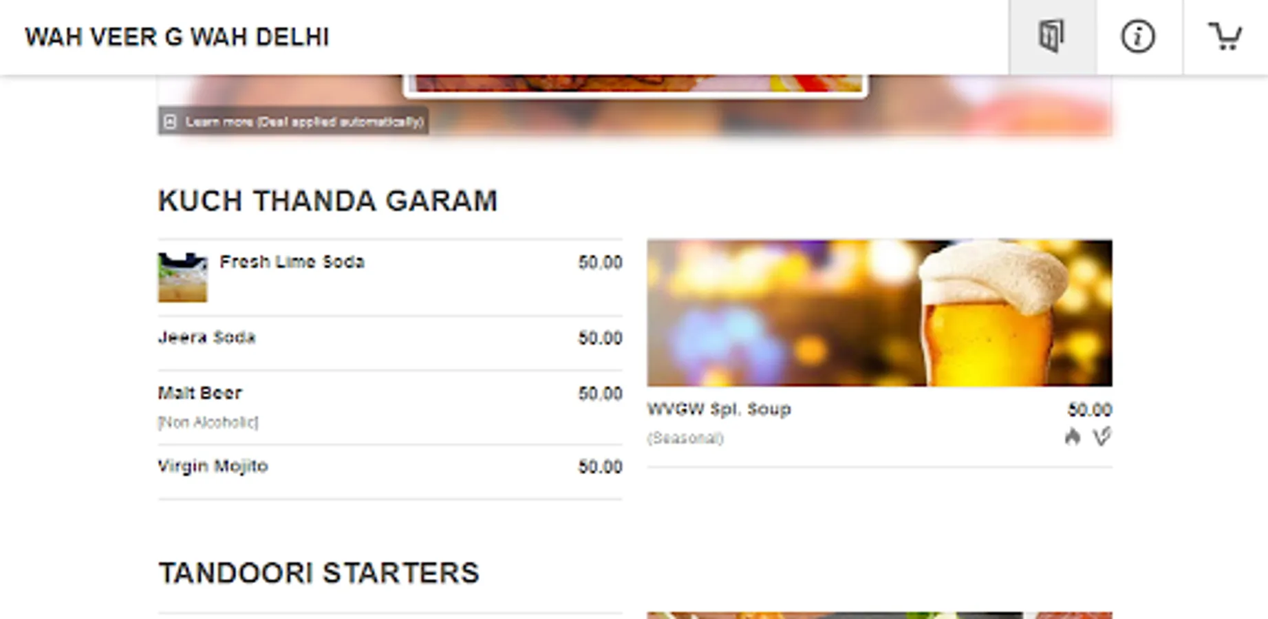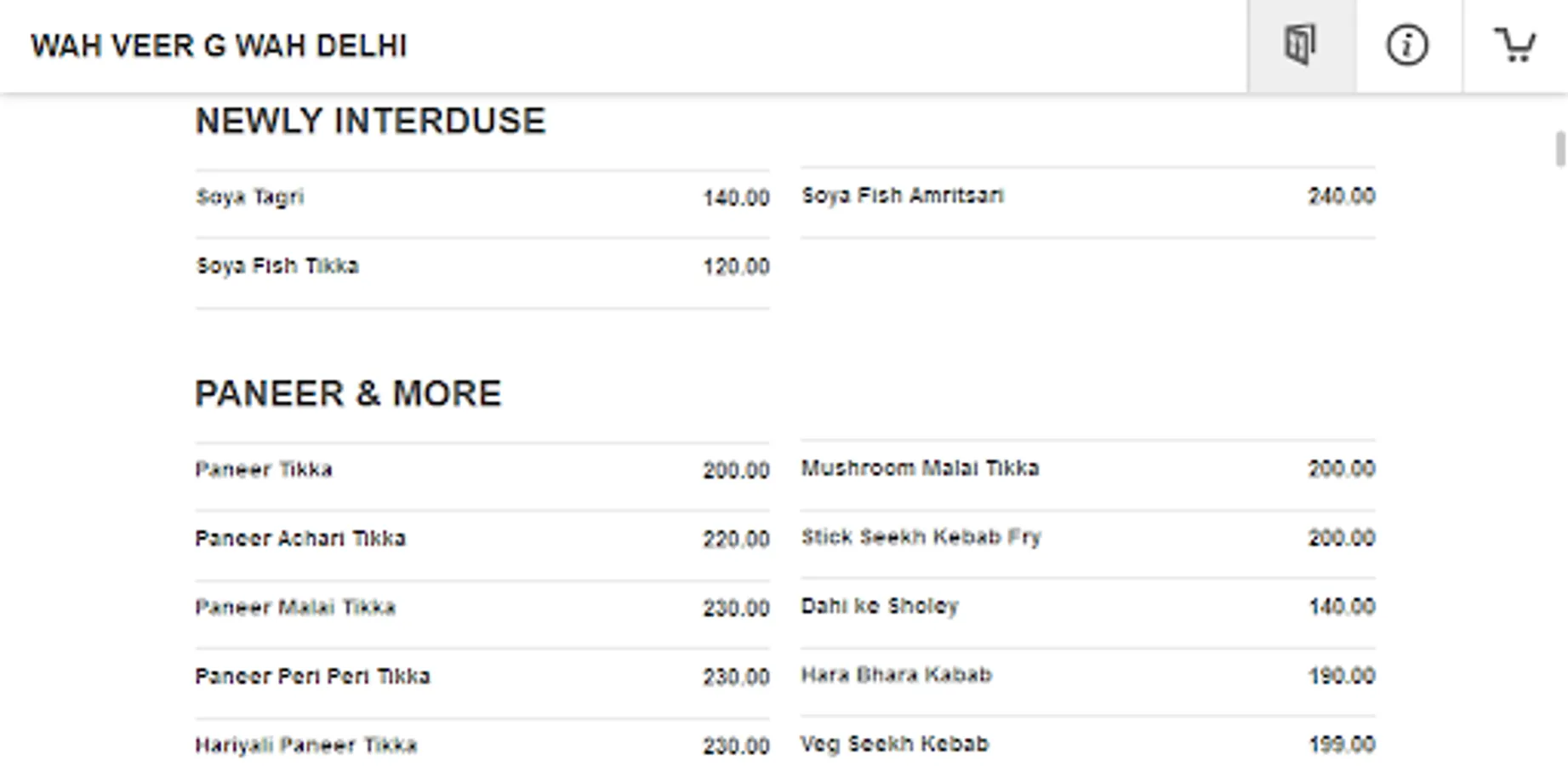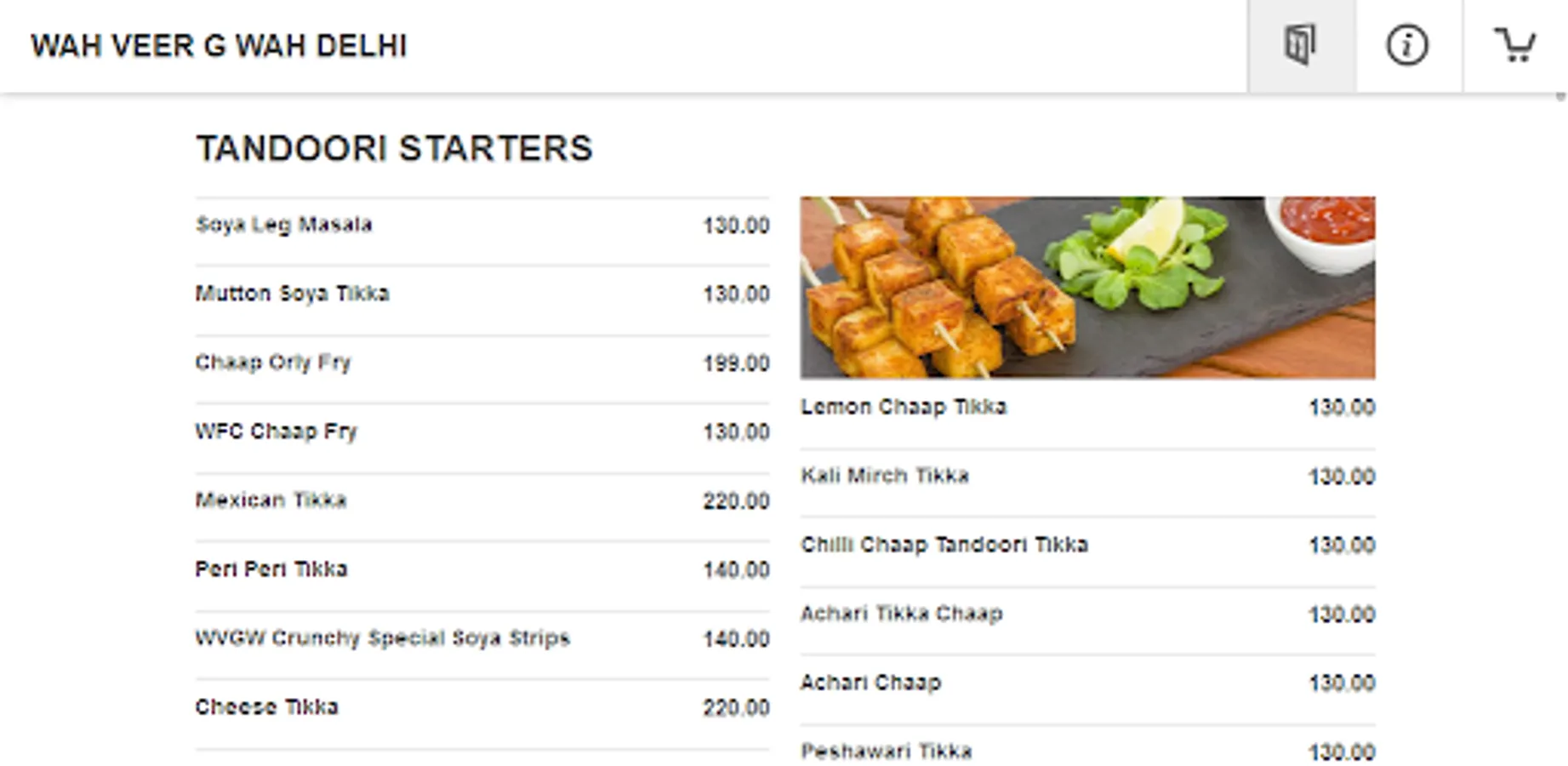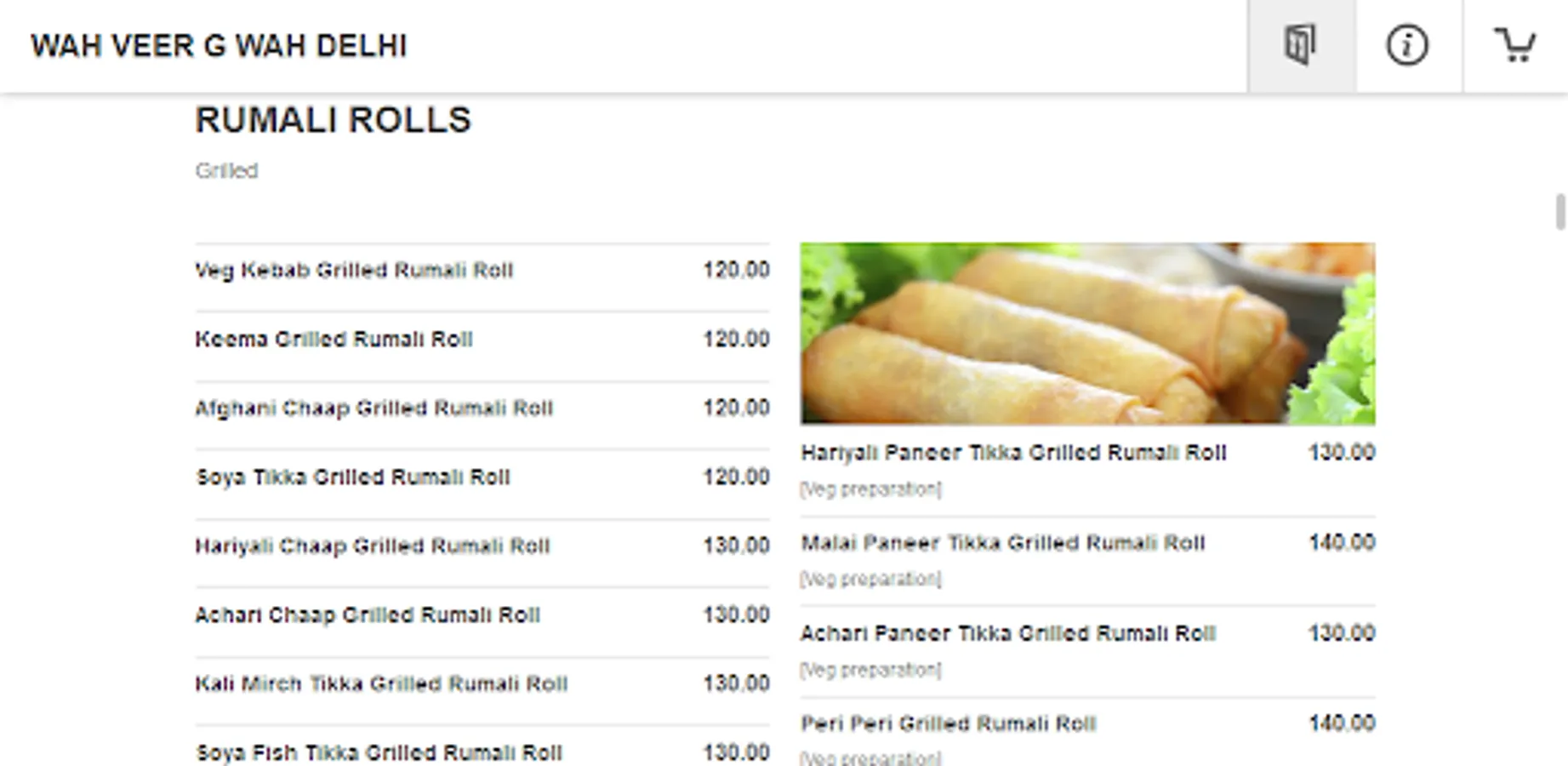 Wah Veer G Wah – Veg Only – Food Menu Platters, Combos and Thali, Starters, Main Course, Breads, Biryani, Chinese, Fried Rice and Noodles, Momos, Rolls, Desserts and Beverages