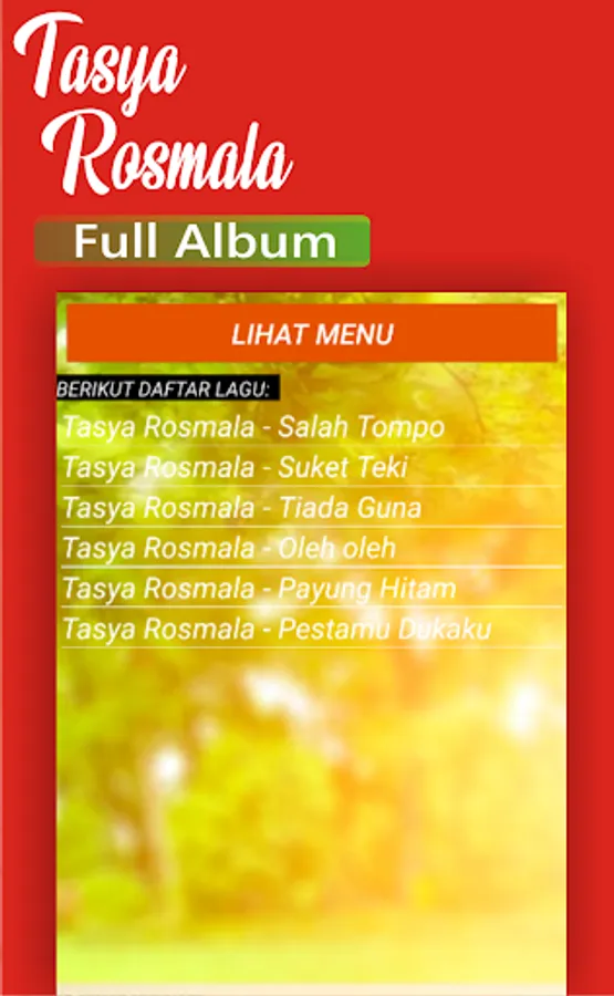 This application is perfect for you fans of Tasya Rosmala and Dangdut Koplo, because you will find the most complete collection of Tasya Rosmala songs here.