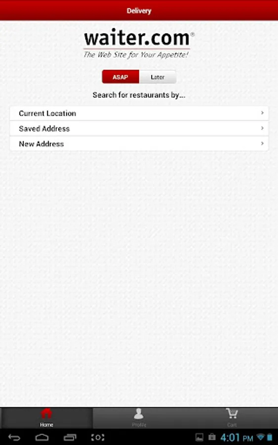 Waiter.com also offers a WaiterPoints rewards system. Earn prizes like movie tickets, gift certificates and even iPads just by ordering food. Waiter.com offers premier customer service in addition to easy specification of special requests and paperless menus for local restaurants right at your finger tips.