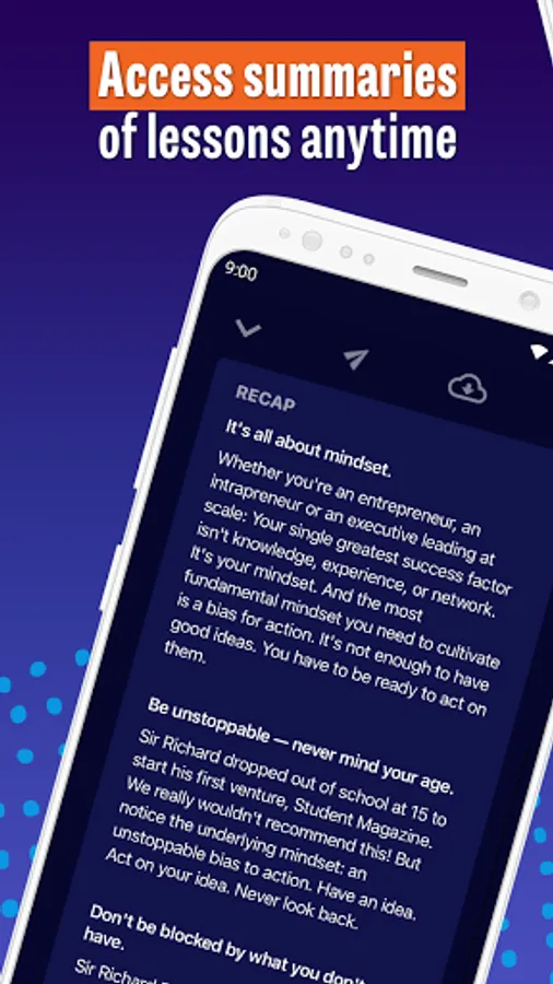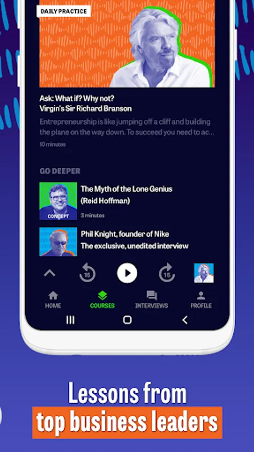 This app is designed to fit into the insane schedules of business entrepreneurs, intrapreneurs and executives everywhere. So you move through each Course at your own pace — and can complete it with just 10 minutes each day.