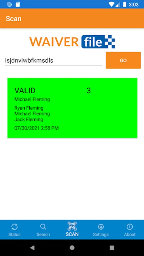 The WaiverScan app adds barcode scanning ability to the online waiver form workflow. Waivers signed using WaiverFile will provide customers with a QR code "ticket" to confirm their entry. Use the WaiverScan app to quickly confirm that each person has a signed waiver. The WaiverScan app from WaiverFile greatly increases the speed that you can check customers in, while ensuring that everyone has a completed waiver on file. This protects your business and makes the whole process easier for both your customers and your staff.