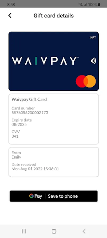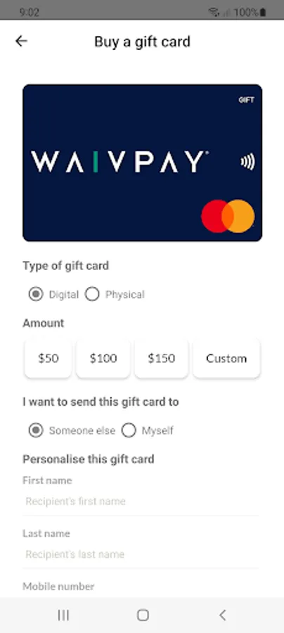 Welcome to the Waivpay app, where you can buy and send gift cards, get rewards and check the balance of your digital gift cards.