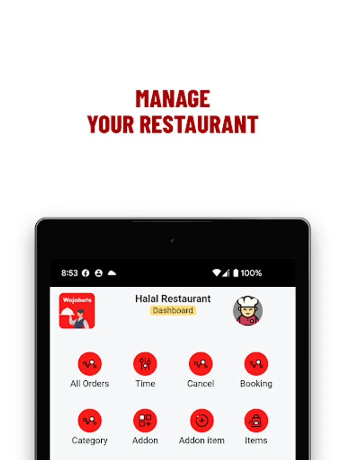 Manage your orders and restaurant enrolled to Wajabats Egypt.