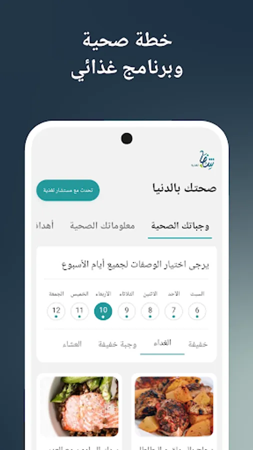 Shafa Nutrition is the first smart Arab platform for healthy food recommendations, diets and diet programs. The application was designed by a team of nutritionists who are experts in the field of providing nutritional advice and guidance and healthy foods for people who want to diet or diet in order to lose weight or achieve a healthy and balanced lifestyle.
