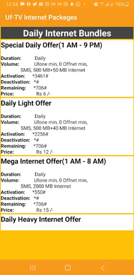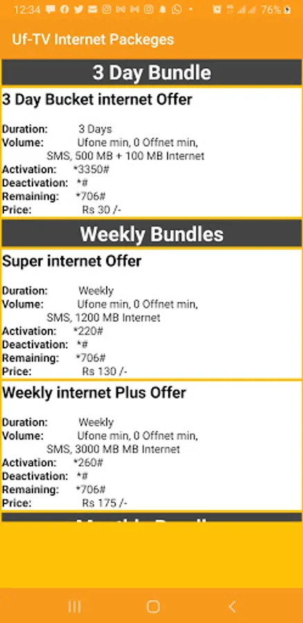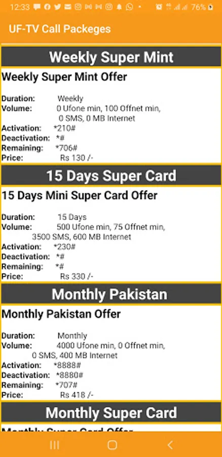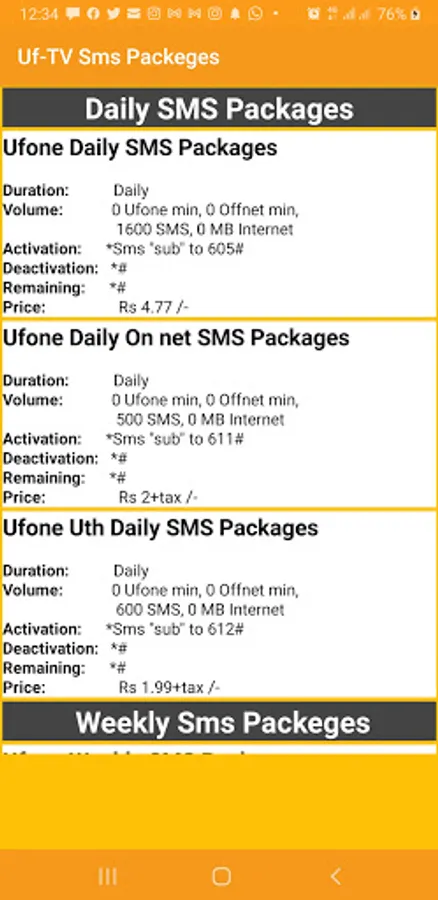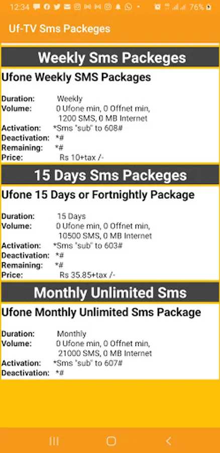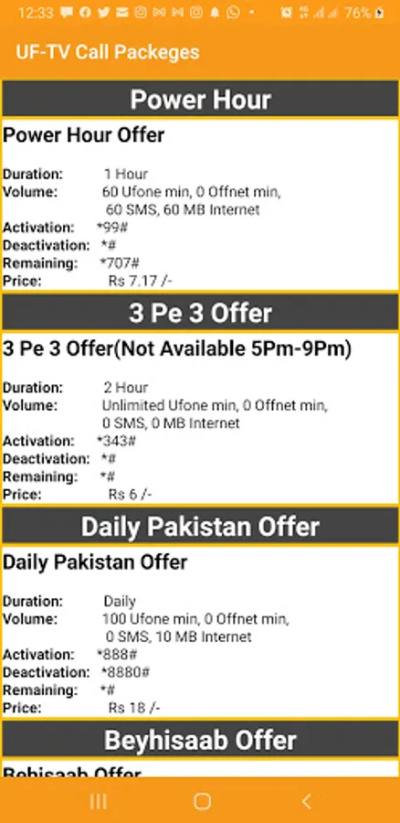 It includes All Prepaid and Postpaid Packages of Pakistan