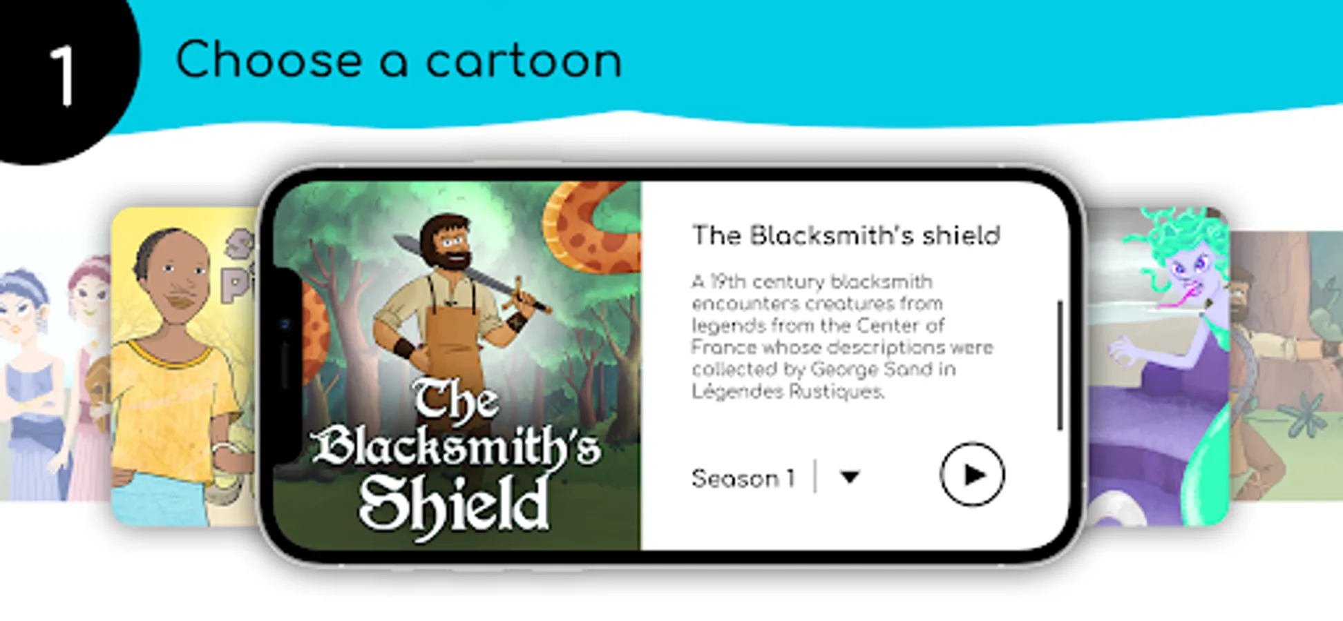 First, your kid chooses one of the cartoons that are available in our catalogue. There is something for all tastes and for all ages between 4 and 10 years old.