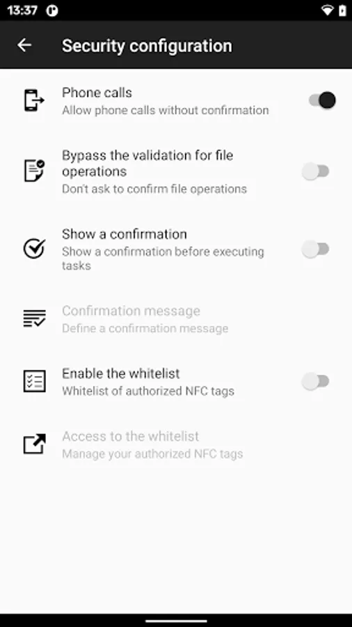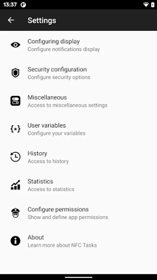 Having the proper permissions, NFC Tasks will be in charge of the execution of all the tasks that have been previously recorded on your NFC tags.