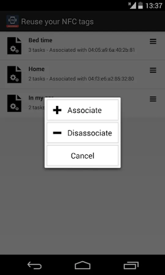 Associate your NFC tags to your tasks profiles directly in NFC Pro Tools Edition.