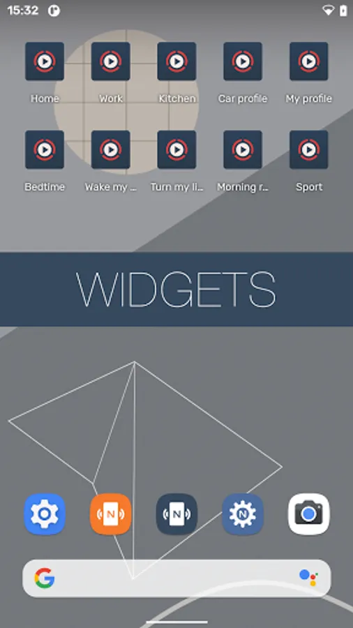 - Executing tasks without NFC tags, using a shortcut on your home screen.