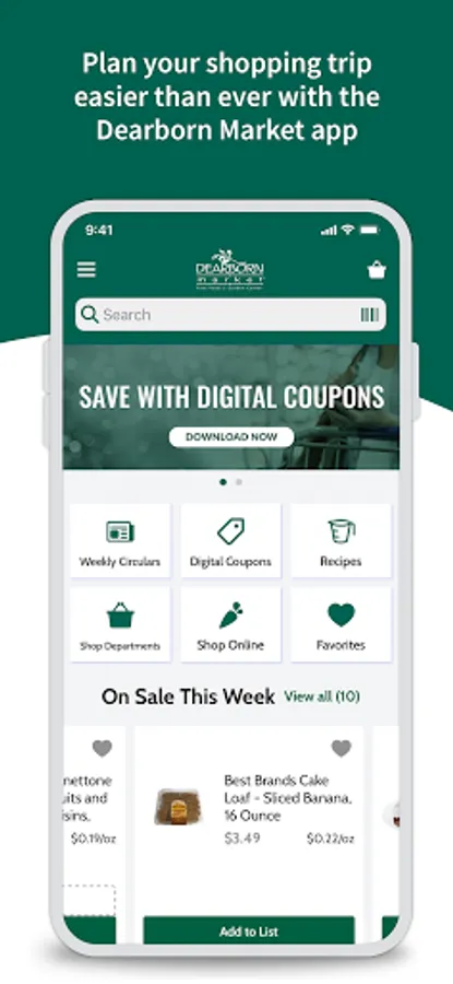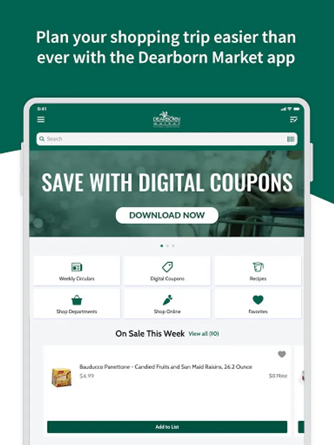 Plan your shopping trip easier than ever with the Dearborn Market app! All the tools you need for savings, recipes, coupons and more in the palm of your hand.