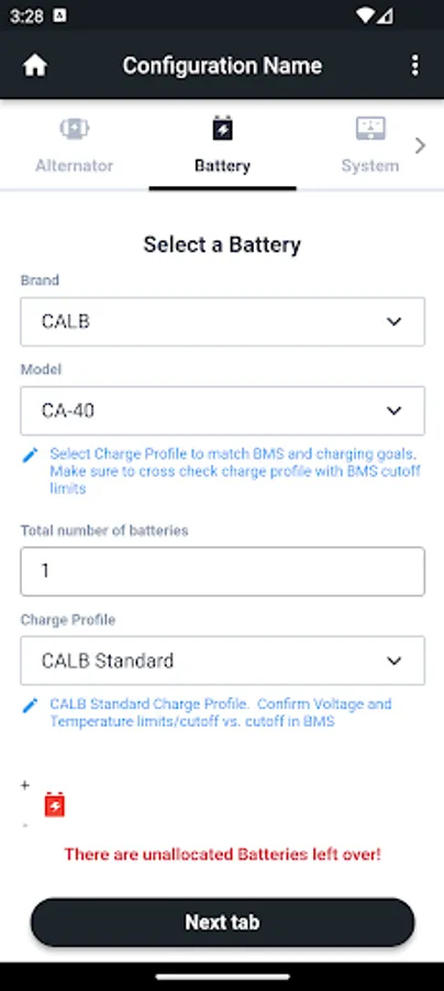 - 100’s of pre-defined Alternators, Batteries, and BMS’s built in.