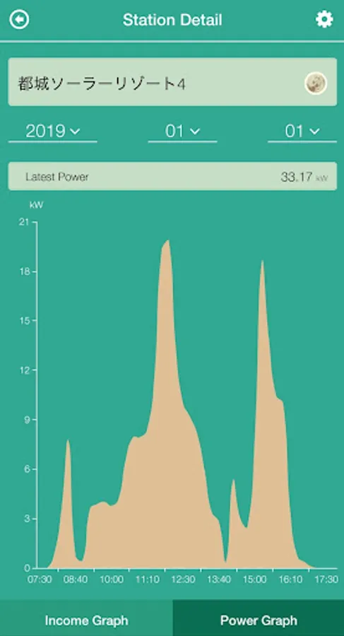 2, real time output graphs of each power plant are possible to browse past power graphs.
