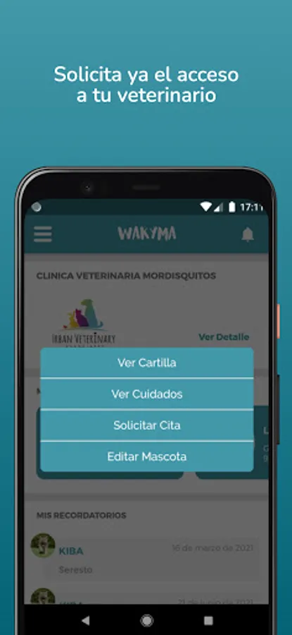 Don't worry once again about remembering your pet's medical history, download Wakyma and always carry it with you!