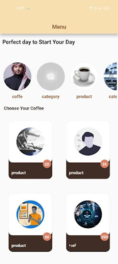 تطبيق ولاء للعملاء لعرض مقدمين الخدمه واختيار القهوه المناسبه لك يتيح لك اختيار نوع القهوه والمحاسبه عليها من خلال qr code