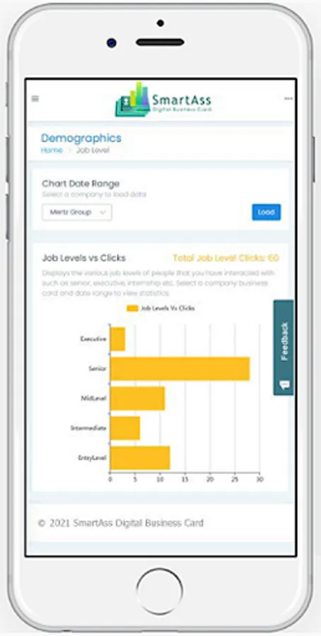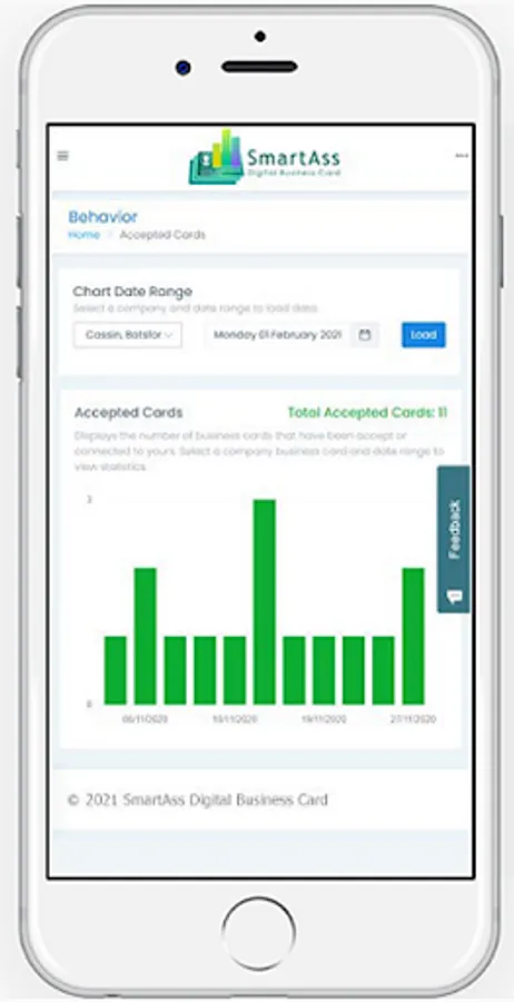 SmartAss is a Contactless Smart Digital Business Card App with (built-in) Advanced Analytics in the form of graphs. You can easily create beautiful digital business cards (personal or for your business) in seconds. Share them and connect with anyone, in any industry, in any country across the globe using the search feature on the app or admin dashboard via your browser.