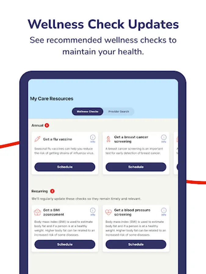 See recommended wellness checks based on personal history to maintain your health.