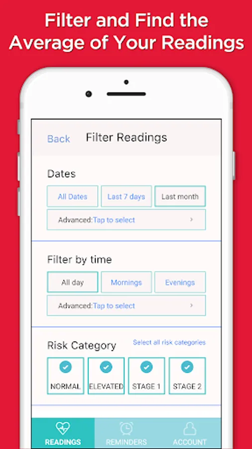 • Set reminders to take your blood pressure readings so you can stay accountable and track results.