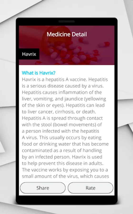 A clean user interface and drug sharing option is available where you can share information about a specific drug with your friends or partner with a single click.