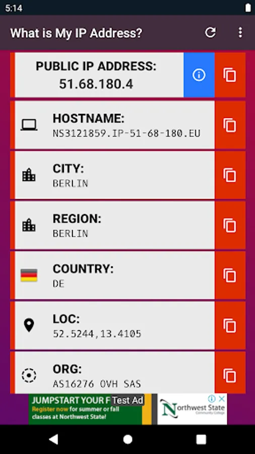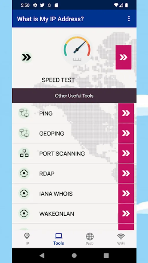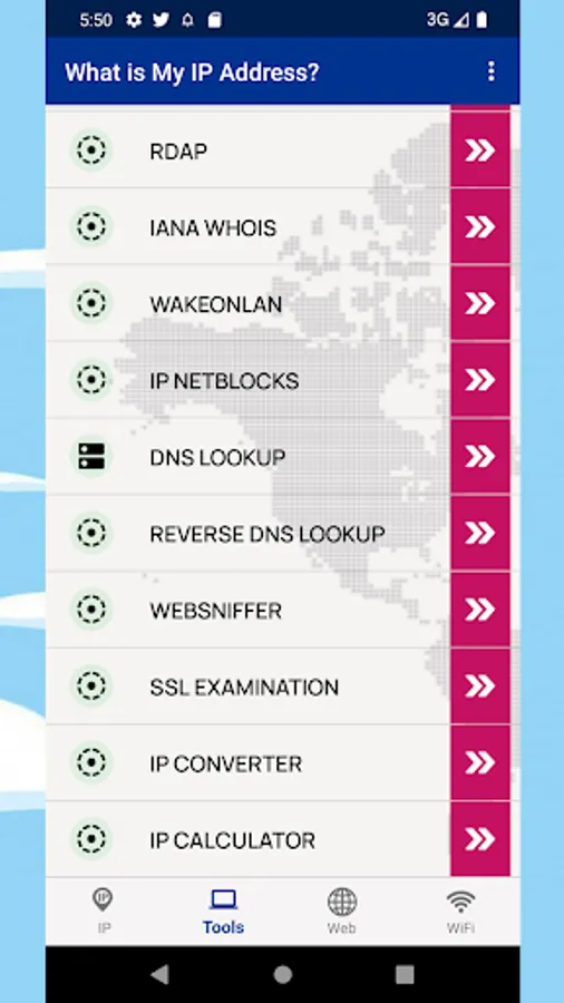 current IP address (Wifi Info: IP, Domain, Internet Tools).