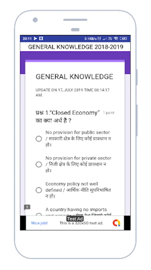 रेलवे द्वारा आयोजित प्रतियोगी परीक्षाओ के लिए यह QUIZ APP है| रेलवे द्वारा वर्ष 2019- 2020 में 2 लाख पदों पर रिक्तिया निकली है| जिनकी तैयारी आप इस QUIZ APP के माध्यम से कर सकते है | अन्य परीक्षाओ के लिए भी आप इस APP को यूज़ कर सकते हैं .