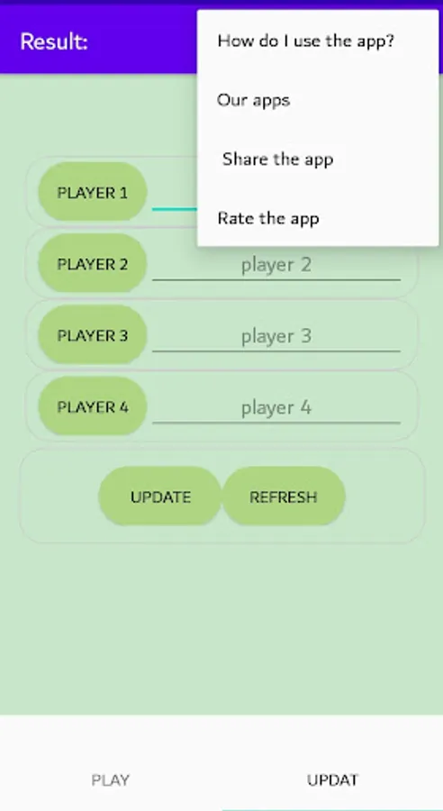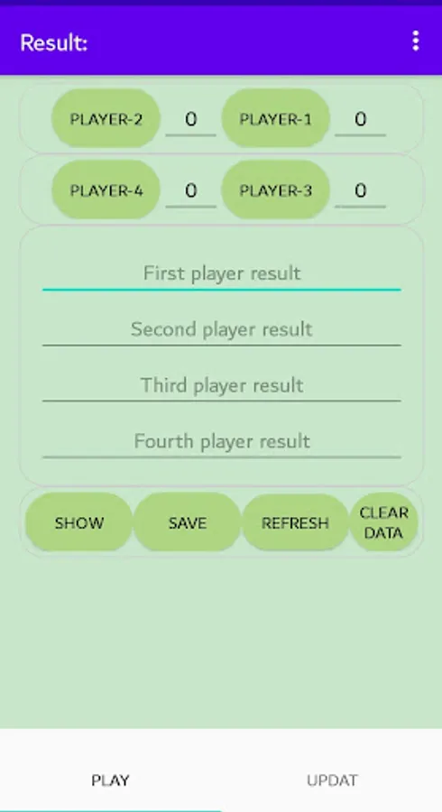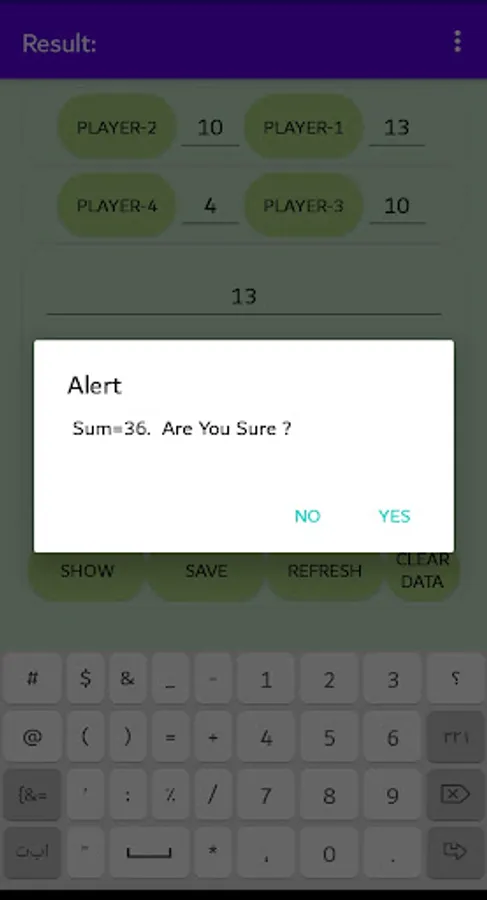 Record and calculat the results of any card games with 4 players-likha-400-and more,you can edit the last result recorded and update in case of any mistak in the result and need to update