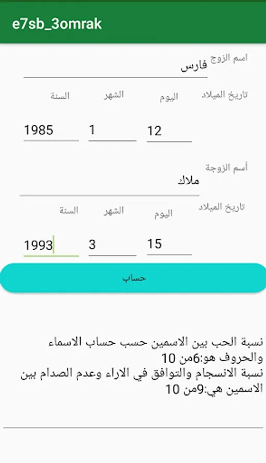 Calculate letters and zodiac sign, and your date of birth. For those who want to create their own application or a graduation project in the field of computers or special educational courses, please write to me at 961-71636330