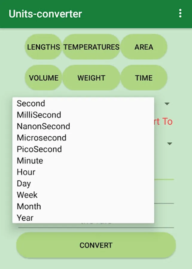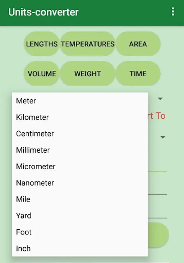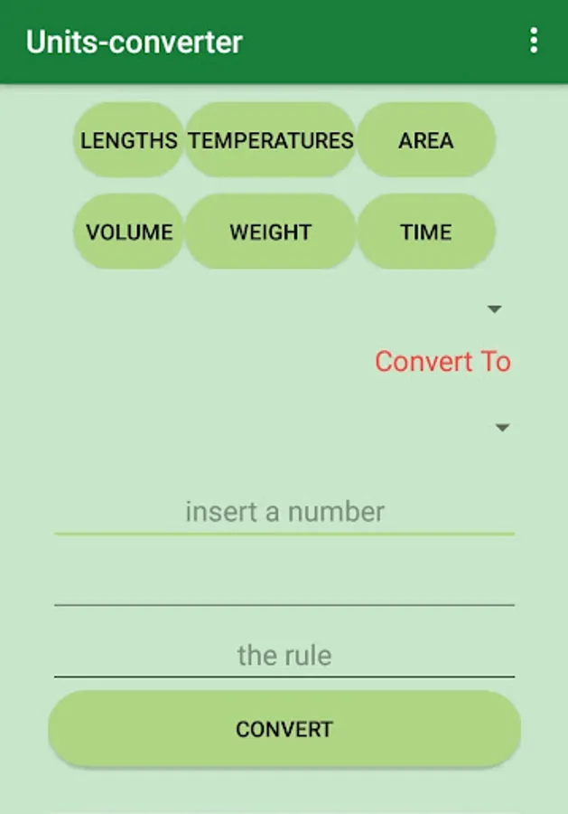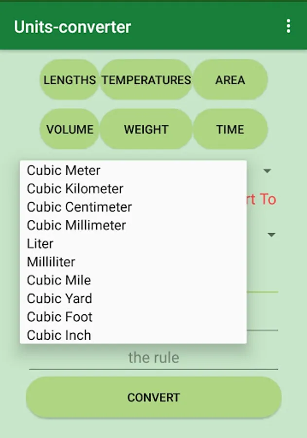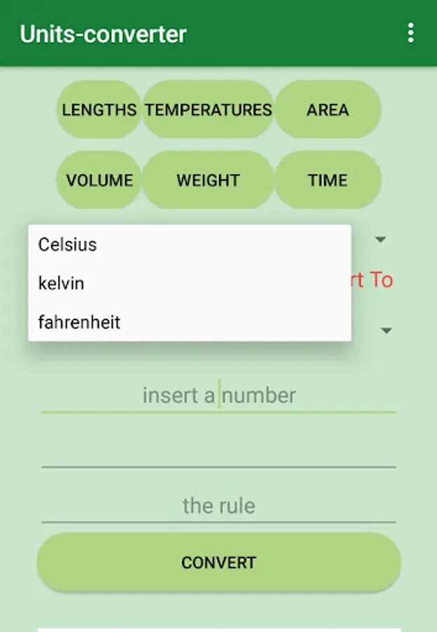 lengths-temperatures-areas-volumes-weights-times converter (from and to) with the conversion rule.