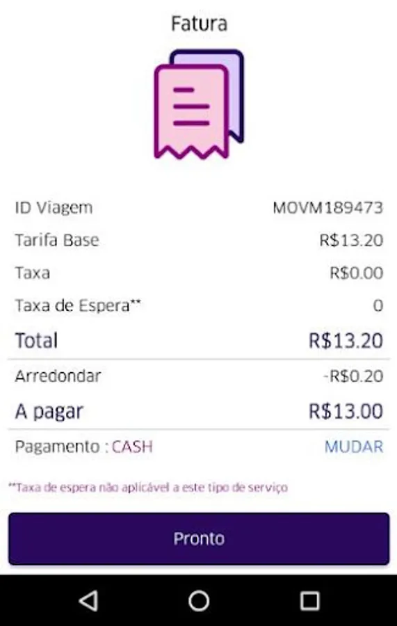 When requesting a driver for his own use or for objects, the user gets the estimated total value of the trip, which starts with a base price and increases with the time and distance to travel. When the trip is completed the full amount is debited to the user's account or paid in cash. It depends on the way you choose to be charged.