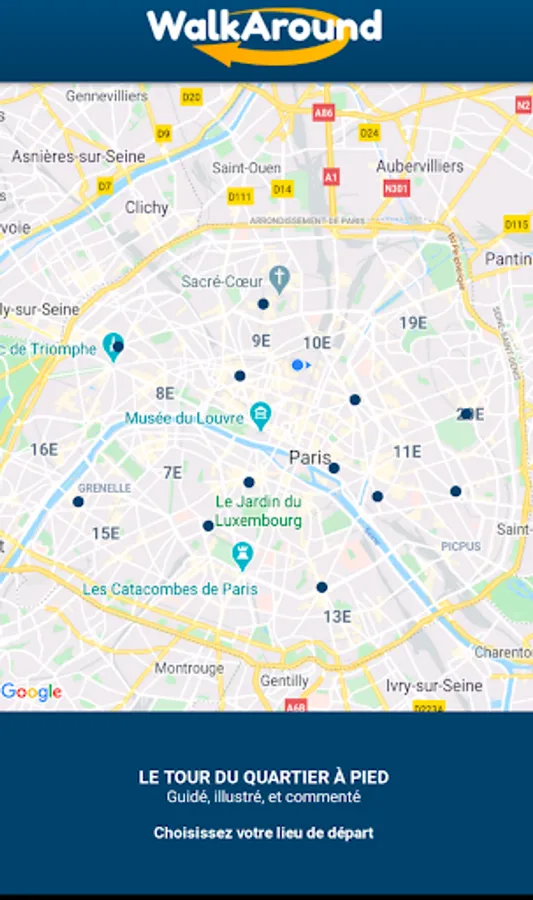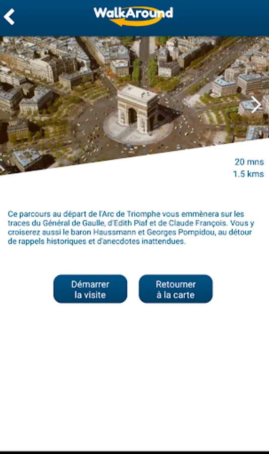Thanks to geolocation, you choose on the WALKAROUND app a circuit close to where you are. The choice is wide and constantly enriched.