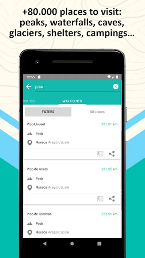 ✅ +100.000 way points (shelters, campsites, peaks, forests, drinking water, places of worship, waterfalls, volcanoes, caves...)