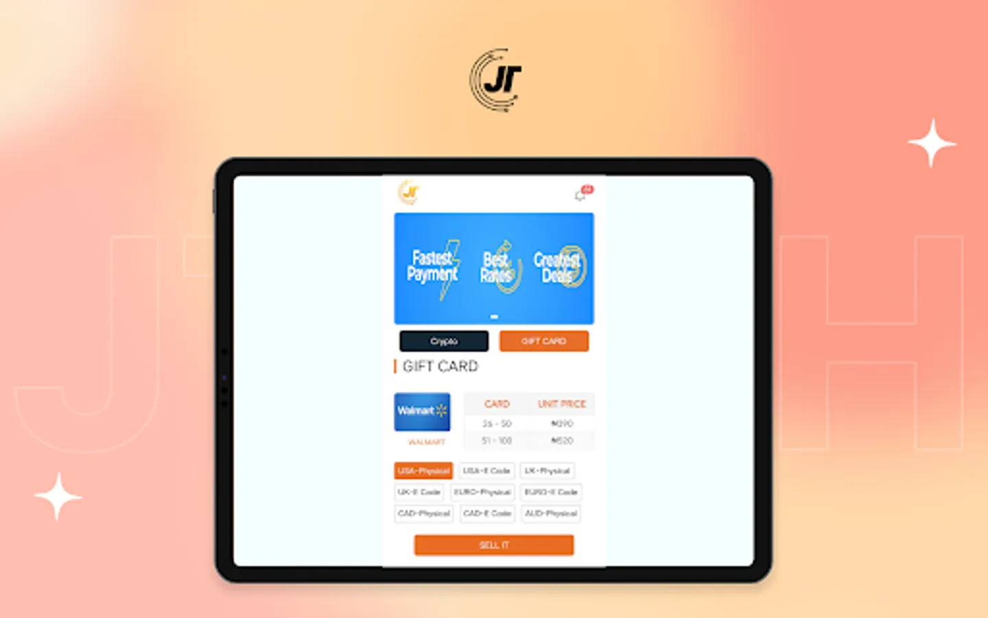 Welcome to Jtechtrade App, this App enables you to transact and exchange bitcoins and gift cards with adequate security features that guarantees safety for clients at all times.