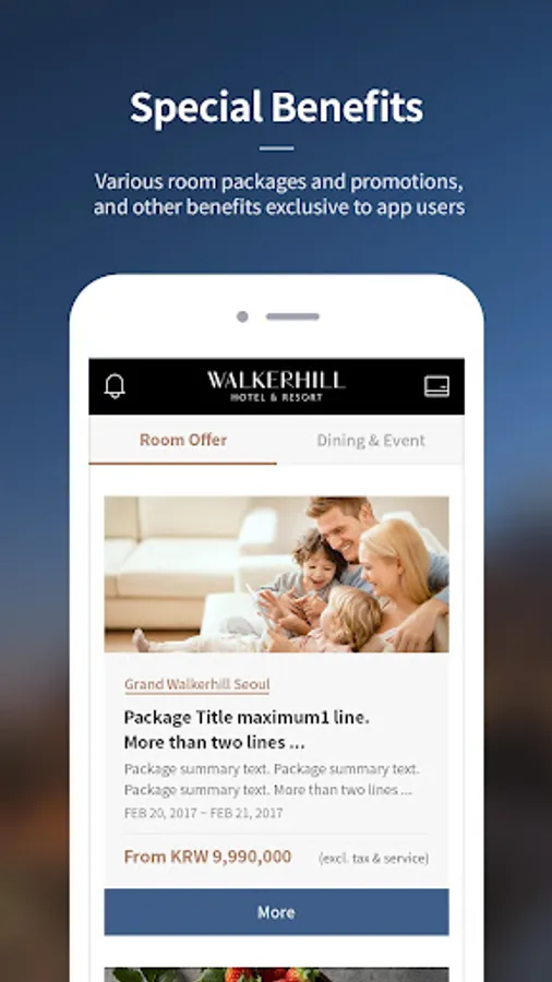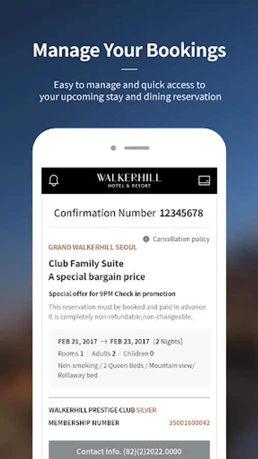 With the Walkerhill App, you can conveniently manage your entire trip to Walkerhill Hotel & Resort in Korea. Join Walkerhill Rewards, our loyalty program, to receive the richest benefits and enjoy exclusive offers for members. The Walkerhill App will help you get the most out of your journey to Korea and ensure a comfortable stay.