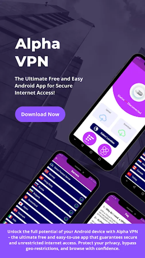 Alpha VPN is a secure and unlimited free VPN to unblock websites, watch online videos, browse streaming content, access blocked apps, accelerate games, bypass firewalls, secure WiFi hotspot and browse privately & anonymously.