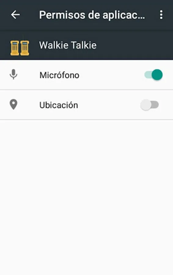 Para el funcionamiento de Walkie Talkie, es necesario antes de iniciar la aplicación en darle los permisos de :micrófono y ubicación de forma manual.