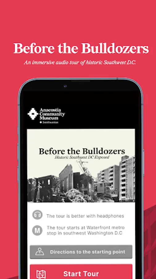 This immersive audio and augmented reality walk brings to life photographer Joseph Owen Curtis' struggle to keep his community intact as Southwest, Washington, D.C. was leveled and rebuilt through a federal program called Urban Renewal in the 1950's. Like a podcast you walk with, the story leads you on a one-hour journey to discover Curtis' stunning photos of "Old Southwest", mid-century utopian architecture, and how race plays into the ways we shape our cities.
