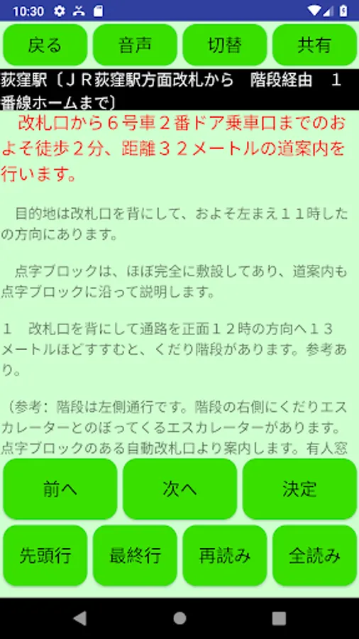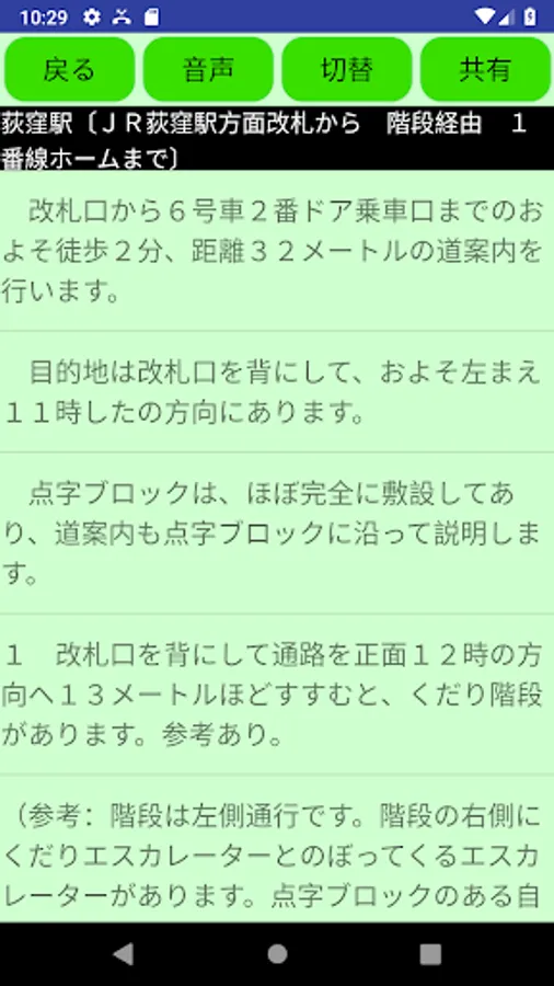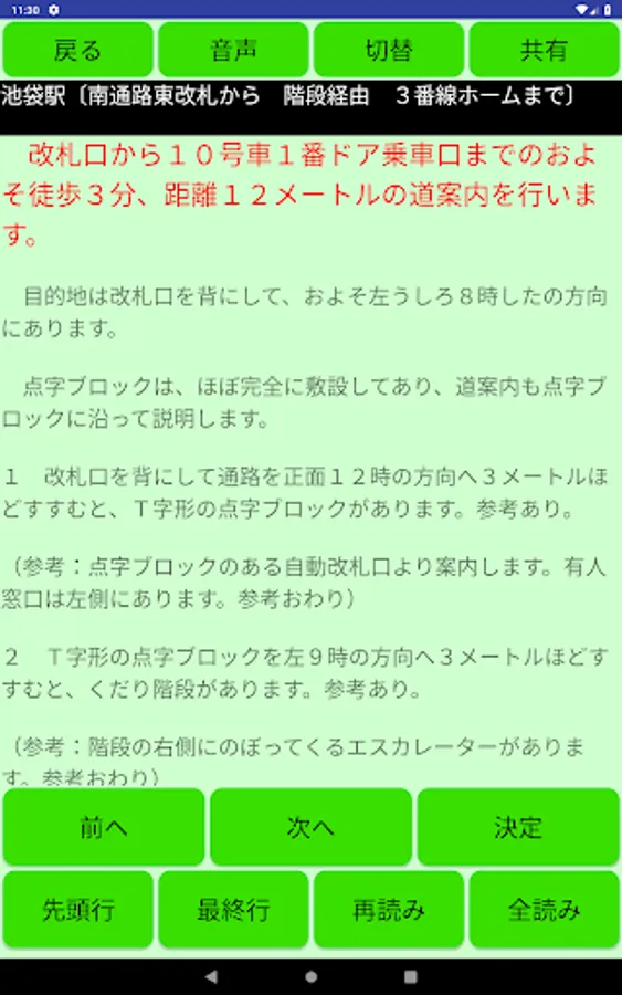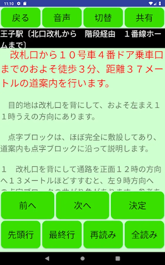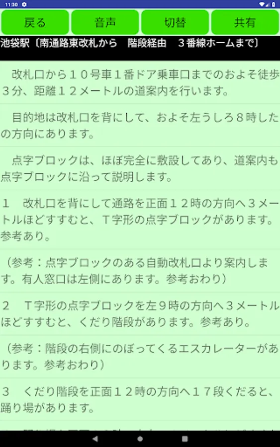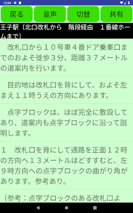 We will guide directions inside the station by using the data of "Station information website Website understood by words" for visually impaired people provided by the "Direction of the authorized NPO corporate word".