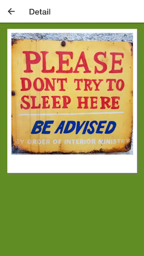 Tapping an image reveals a detail page, with a slightly more enlarged version.Tapping that image flips it over, revealing a hint about how far away and in what direction the actual location might be. There is also a button labeled "Found it."