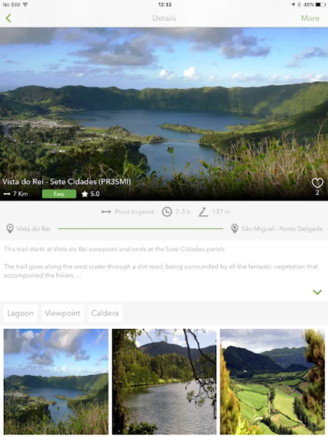 • Distance, difficulty, duration, description and photos for each trail made by local hikers