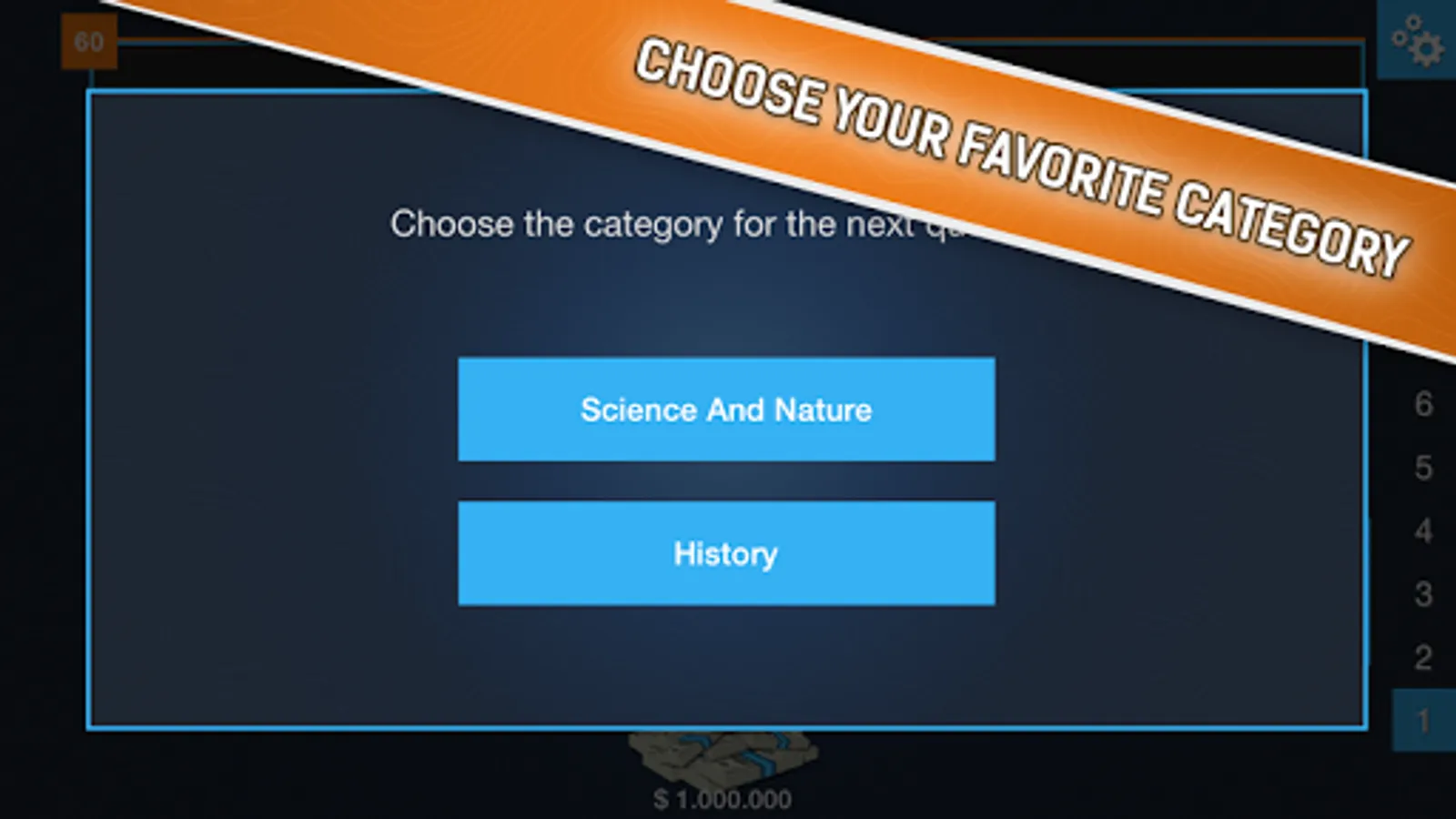 Mega Quiz is the only game of general knowledge where you start with the top prize: 1 Million!
