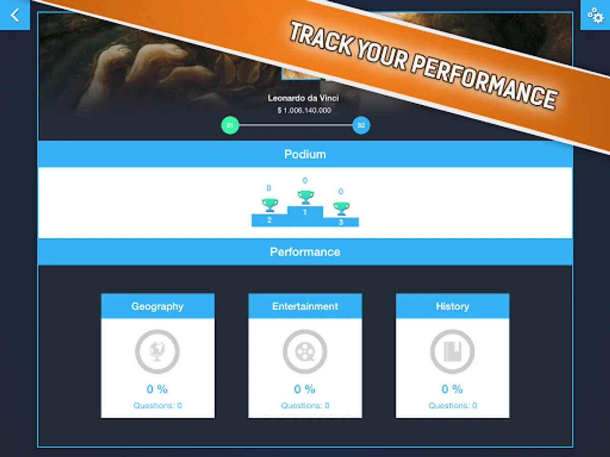 Mega Quiz shows you a set of statistics so you can track your performance in the game and try to always improve your best!