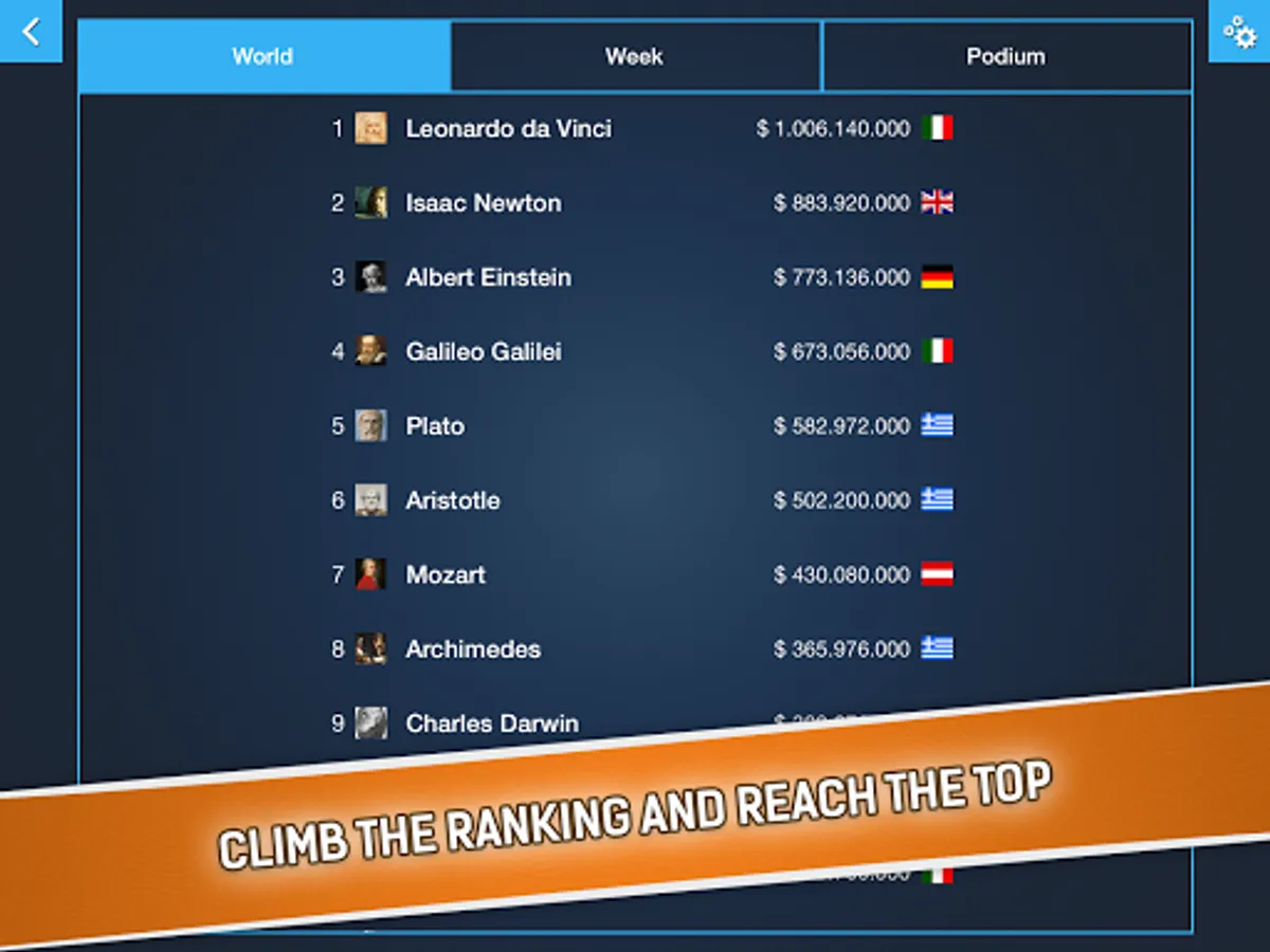 * Podium: top three players of each week.