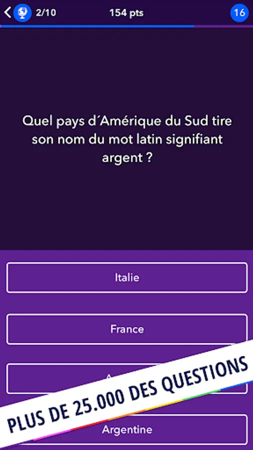 Develop your general culture every day with this incredible quiz! Play with friends, family or just alone and have fun while learning new things about the world around you!