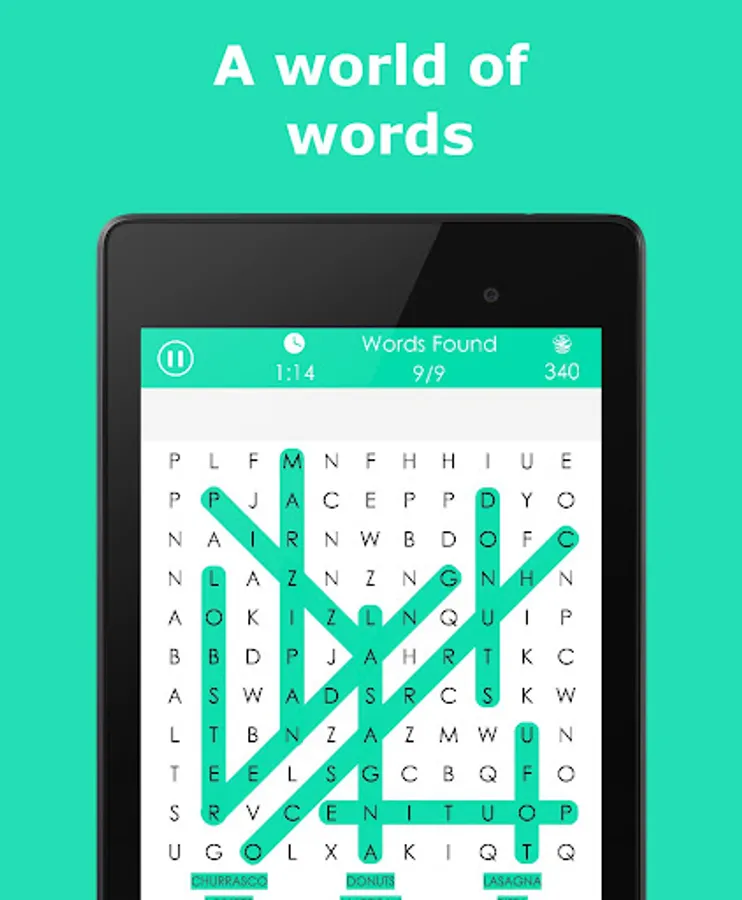 An amazing word search game full of puzzles with several categories and themes to fit your mood anytime, anywhere…no matter your age!