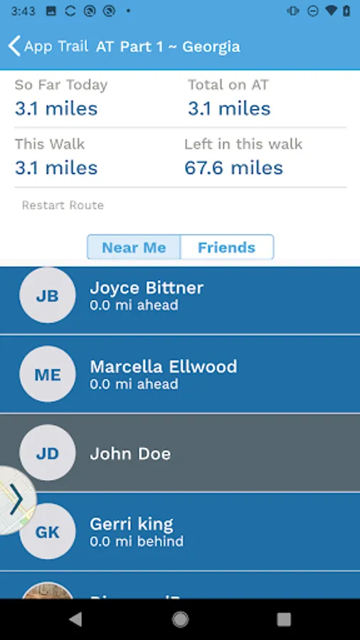 Use your daily walking/running distance recorded from the Google Fit app towards the Appalachian Trail. See other users completing the same route, and don't let them pass you!