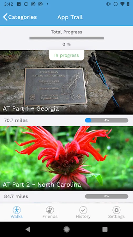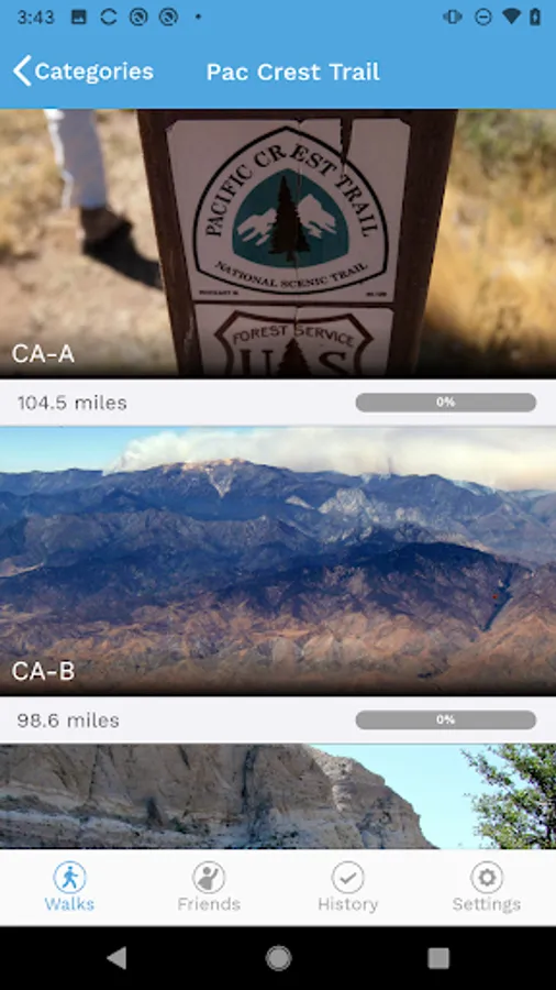 The Appalachian Trail is really long. So we added checkpoints along the way to help you stay motivated. For the Appalachian trail, checkpoints are shelters where you can "stay the night", along with some points that provide a good view. Checkpoints vary by walk, and of course you cannot unlock checkpoints until you reach them!