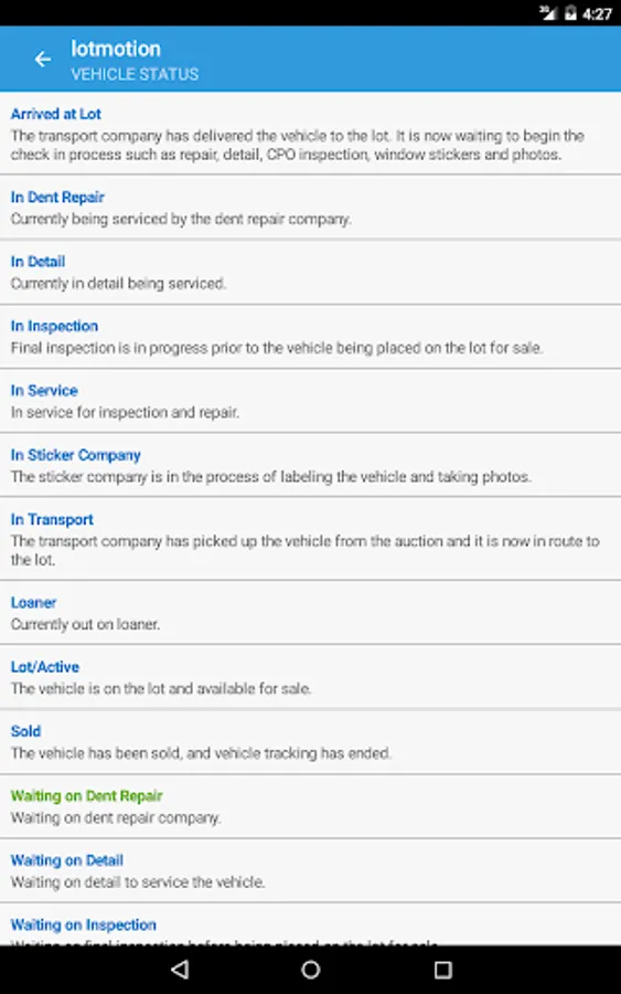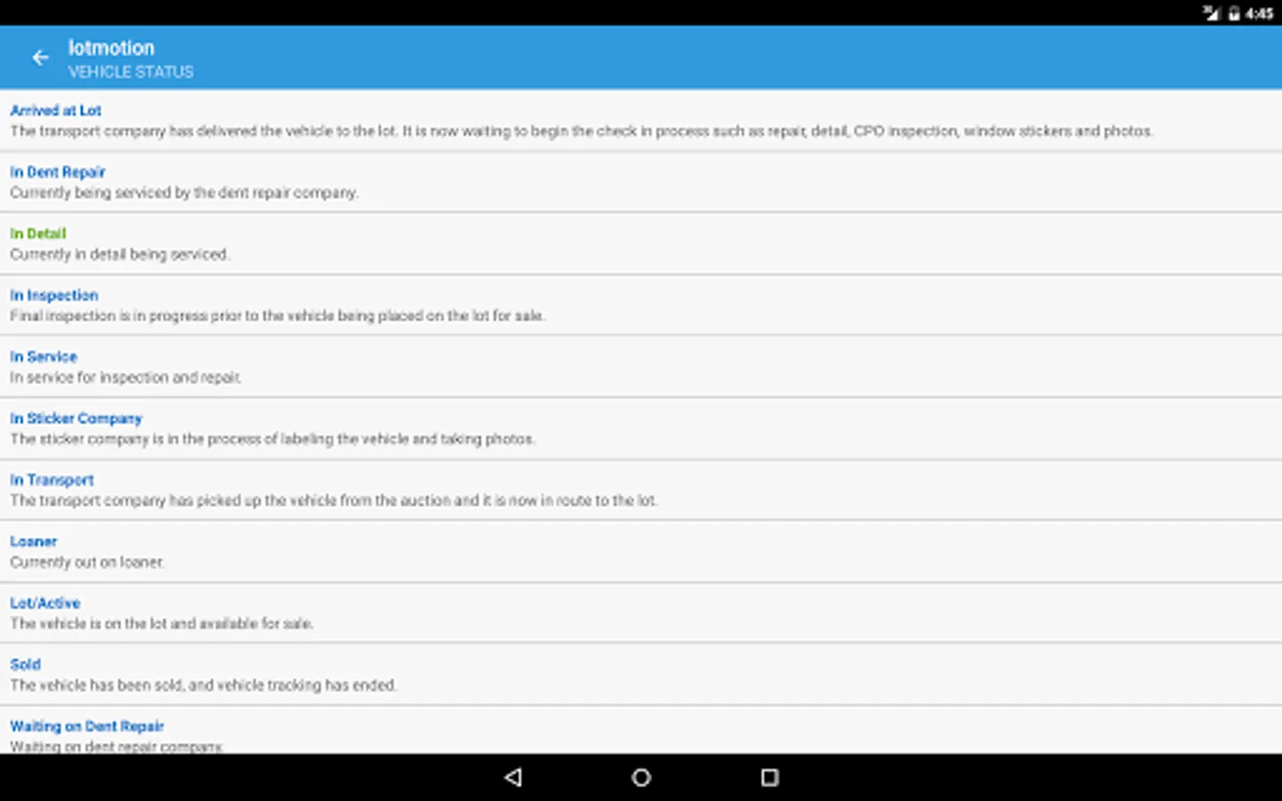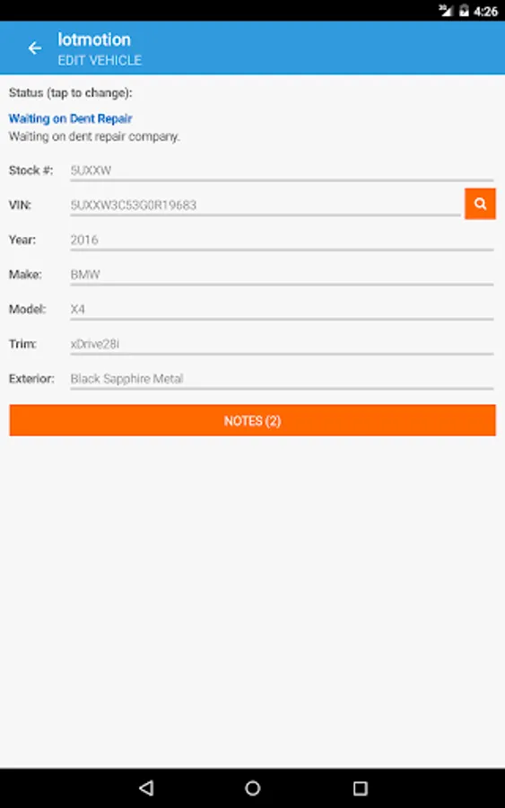 LotMotion enables dealers, their employees, and vendors to quickly scan a VIN barcode in order to modify the status of a vehicle for the purposes of tracking, reporting, and increasing the performance of lot flow.