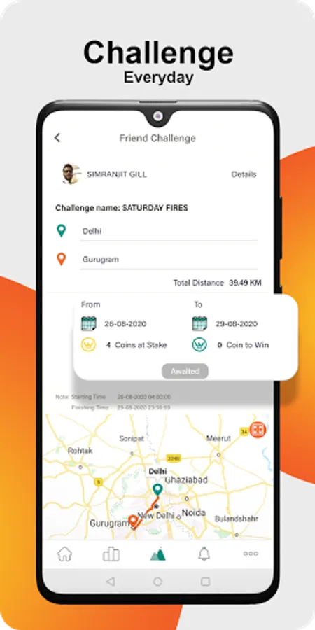 The App is based on competitive walking between users. You can Challenge a friend to walk between any two cities on globe. The thrill is in maintaining your fitness levels at prime, all the time. The distance that you walk, will be plotted on actual intercity maps, will urge you to reach at your destination faster than your opponent.