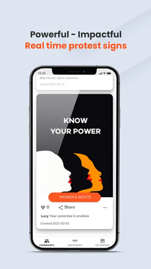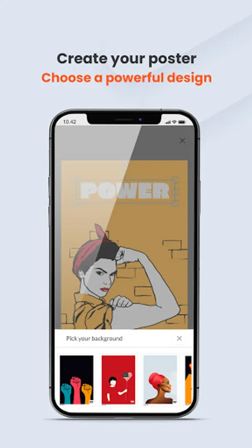 Each poster is centered around powerful and empathetic artwork and allows users to personalize their posters by adding their own slogans. Our powerful artwork is drawn or taken by real artists of the Resistance and is meant to inspire empathy and political activism.