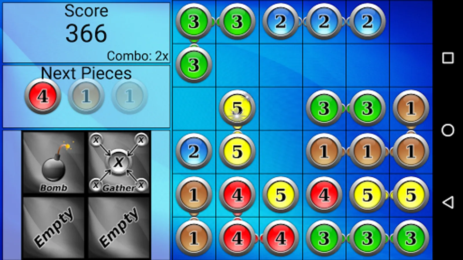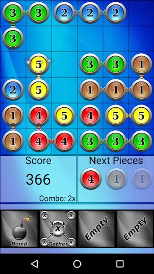 Place numbered disks on a board, linking them to other like disks. Gather those disks for points.