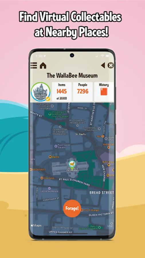 Join Benson the wallabee on his journey to find and collect over 2,600 virtual items hidden in locations all around you! WallaBee is a scavenger hunt style game that scratches the insatiable collecting itch, allowing players to obtain virtual items and create their own collection. The goal of WallaBee is to complete every set of virtual items available. Each set has a unique theme that’s packed with beautiful artwork, waiting to be saved to your personal collection!